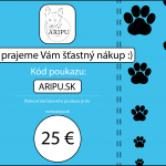 Ak chcete potešiť svojich blízkych produktami ARIPU a nie ste si istý typom produktu, potešte ich darčekovou poukážkou. Platnosť poukážky je 6 mesiacov od zakúpenia. V ponuke máme poukážky v hodnote 25 €, 50 €, 75 € a 100 €.